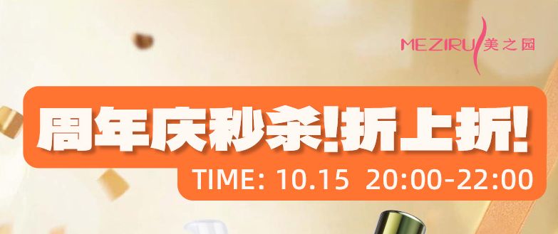 MEZIRU美之园|10.15号晚20点直播预告,周年庆秒杀!折上折!